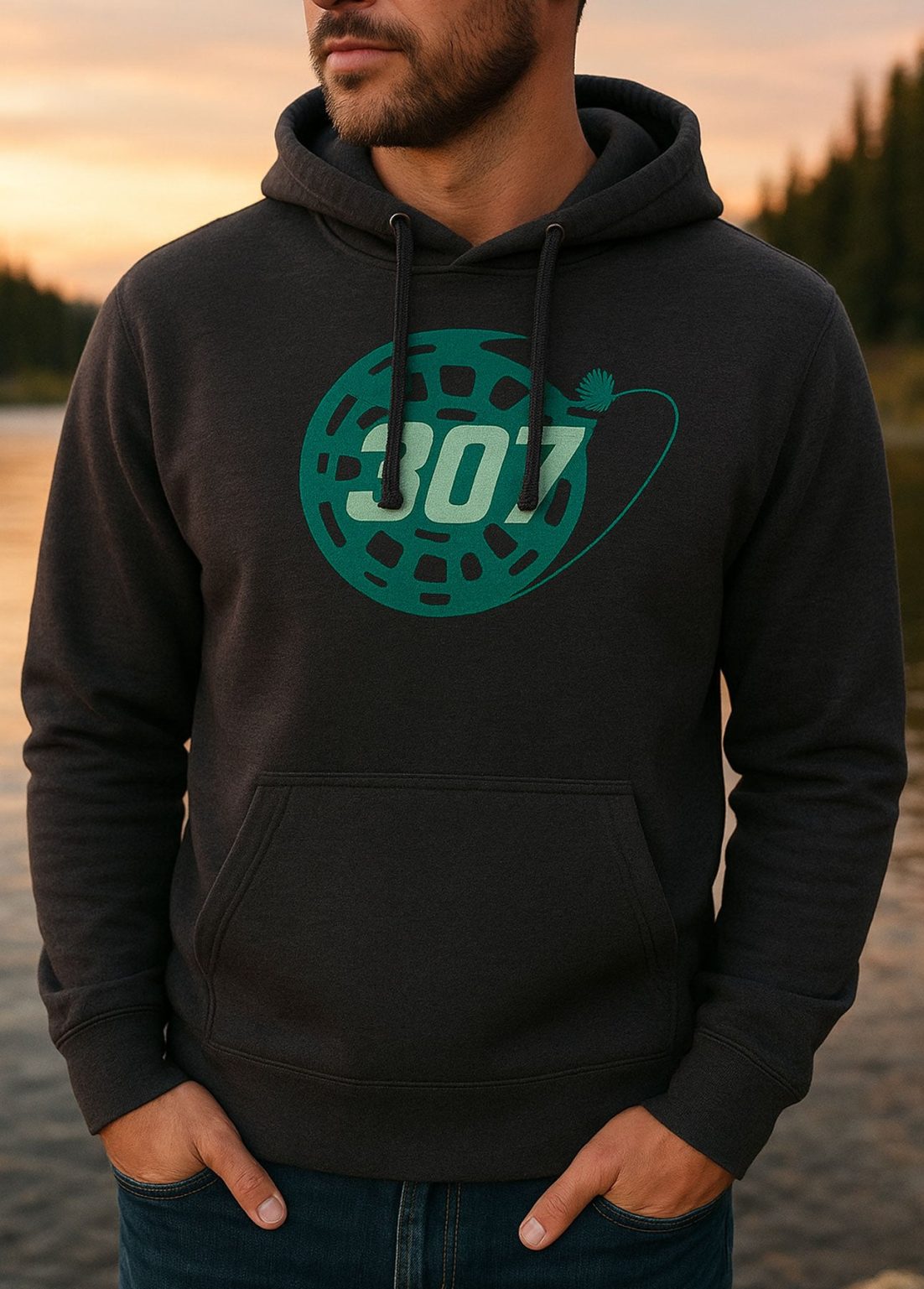 Wrap yourself in Wyoming pride and river-ready style. This heavyweight hoodie sports a bold graphic of a fly-fishing reel with the iconic 307 area code worked right into the design—a nod to wide-open skies, wild trout, and the Cowboy State’s legendary waters.