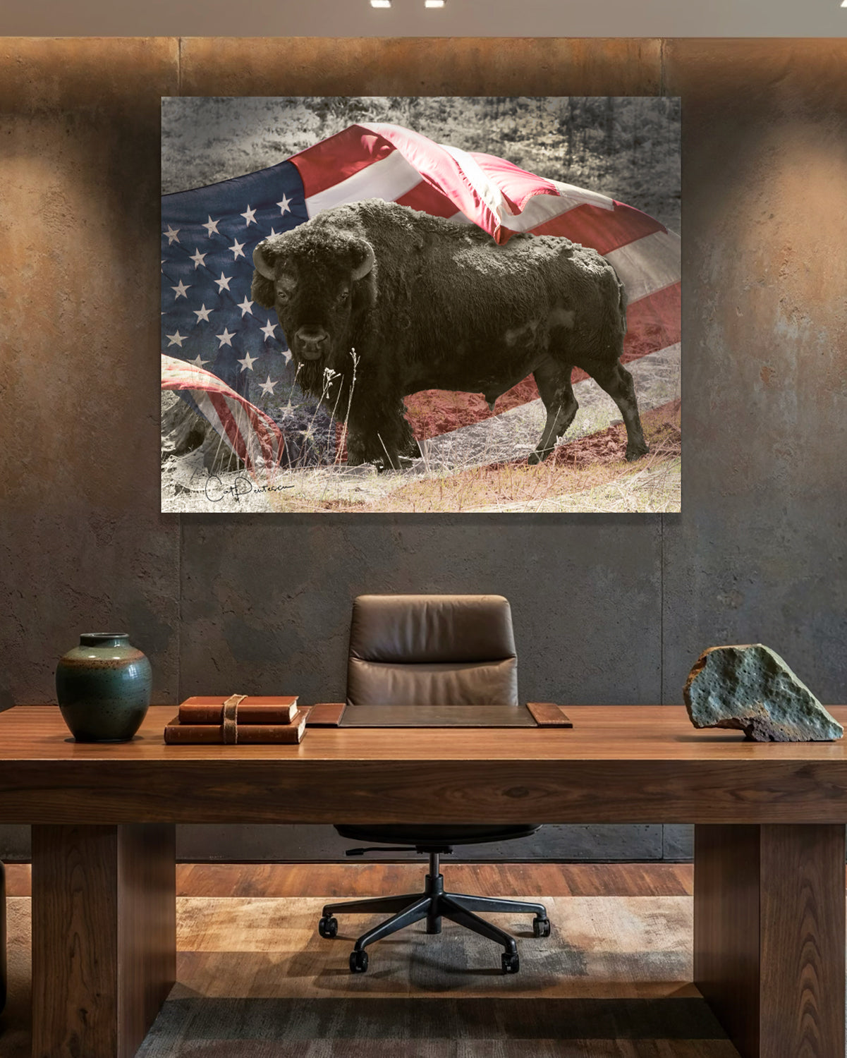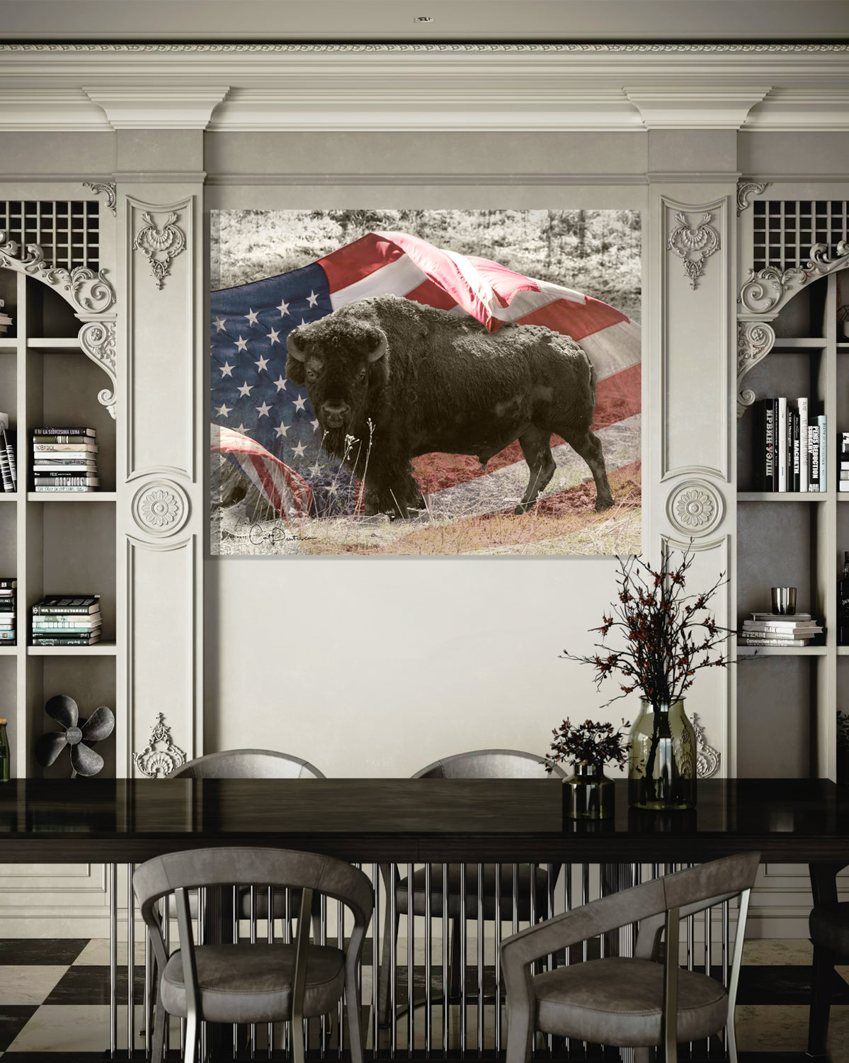 With the vision and know how, Cat masterfully blended three of her images (two of the buffalo and one of the American flag) to create this one of a kind piece titled American History A masterpiece made with love, deep respect and admiration for the American buffalo and our country by Nature and Wildlife Photographer, Cat Pentescu.
