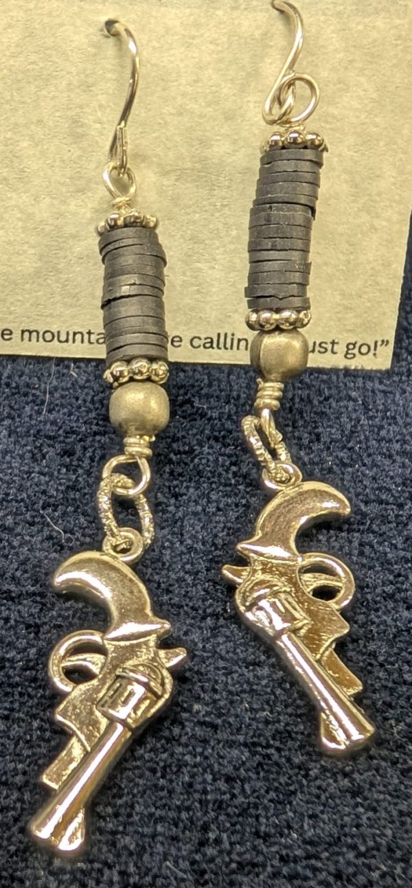 Make a bold statement with these striking gun charm earrings, handcrafted for those who love unique jewelry with an edgy, modern touch. Each pair features high-quality sterling silver earwires and measures approximately 3 inches, offering a comfortable dangle with smooth, eye-catching movement.