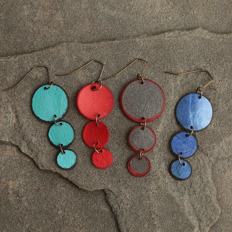 Made from authentic, translucent rawhide and hand fashioned, hypoallergenic ear wires, Round Up earrings are sure to be your statement piece. Dare we say, in fact, they’ll be the show at any party. You’ll love them for their ethereal color and elegant design. Approximately .1” by 2.5”, they’re available in four fabulous jewel toned and metallic color combinations. These long dangles are still so lightweight your ears won’t know they’re wearing such beauties! |