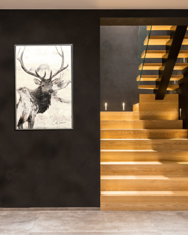 Winter is a rough time for Elk and other wildlife in the Rocky Mountains. Finding food in deep snow is challenging yet this bull elk takes it all in stride. Yes, this is an artistic image of a large bull elk in a snowstorm created with one of my photos. With filters and a little artistic “magic” it looks more like a painting than a photo.