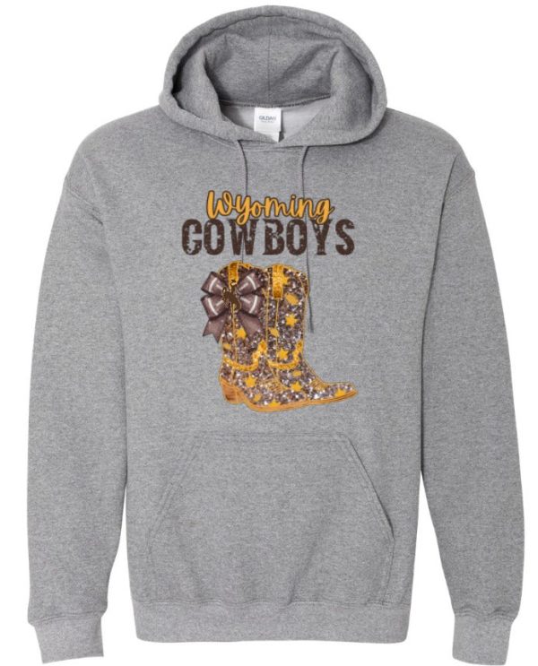 Step up your Wyoming Cowboys pride with this eye-catching boot hoodie featuring a stunning faux glitter design. This premium hoodie showcases a classic cowboy boot graphic with sparkling glitter accents that add a touch of Western glamour to your game day or everyday style.